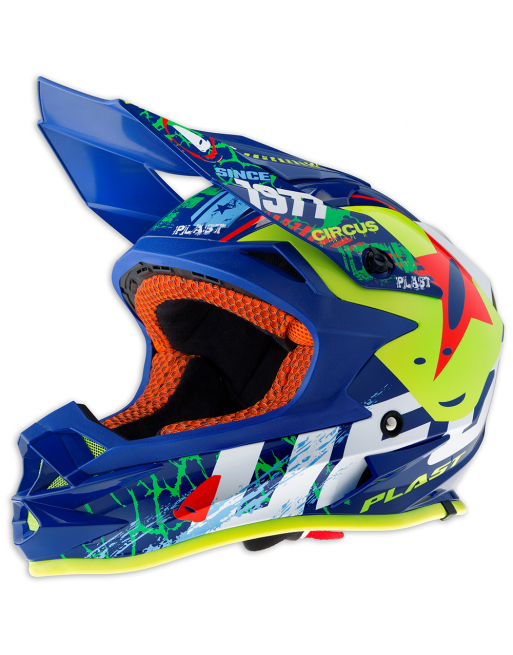 Casco UFO Onyx Circus Azul/Amarillo Flúor/Blanco/Rojo Talla M HE115M